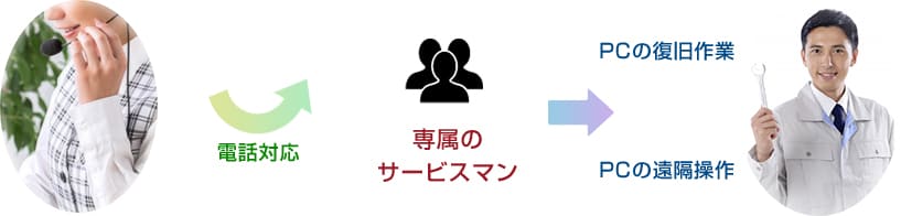 復旧作業が必要な場合は専属のサービスマンを派遣してサポートさせて頂きます。